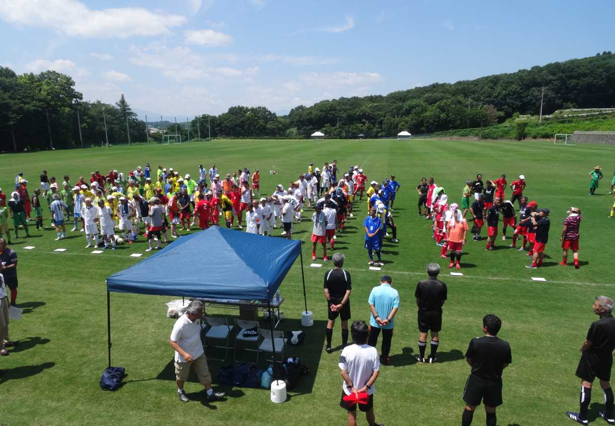 今回は O-70 7チー厶、O-65 4チーム、O-60 7チー厶が出場し、梅雨の合間の真夏を思わせる太陽のもと、熱い(暑い)戦いをたのしみました